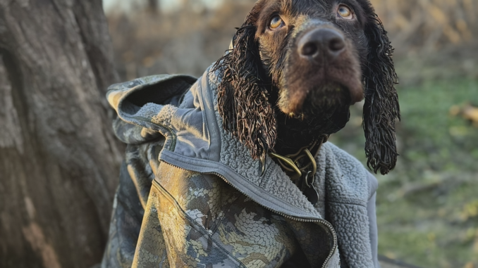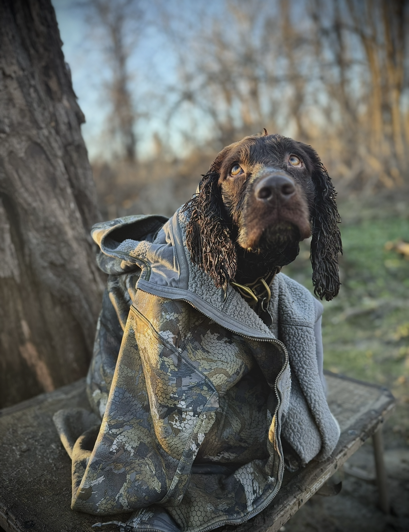 Went hunting with my dog on the coldest day of the year, forgot his vest so had to improvise