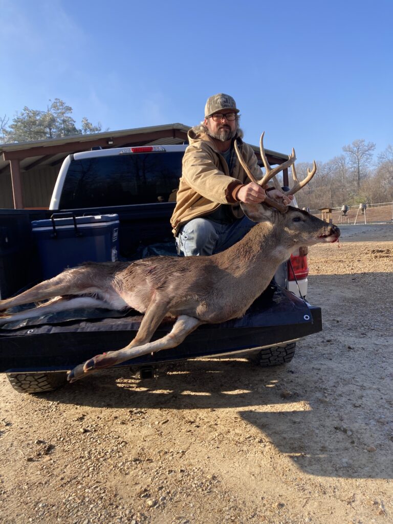 The day after the lineman was in there, I got to hunt because we didn’t work. He was fallowing one doe and I use a 444 and thought I hit him real low, because of buck fever lol, so I waited a good bit of time to go see.