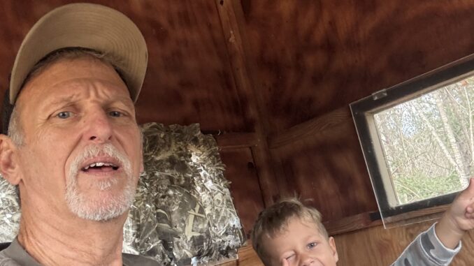 When the deer are not moving fun takes center stage in the blind. Waylen and his Dad Jacob