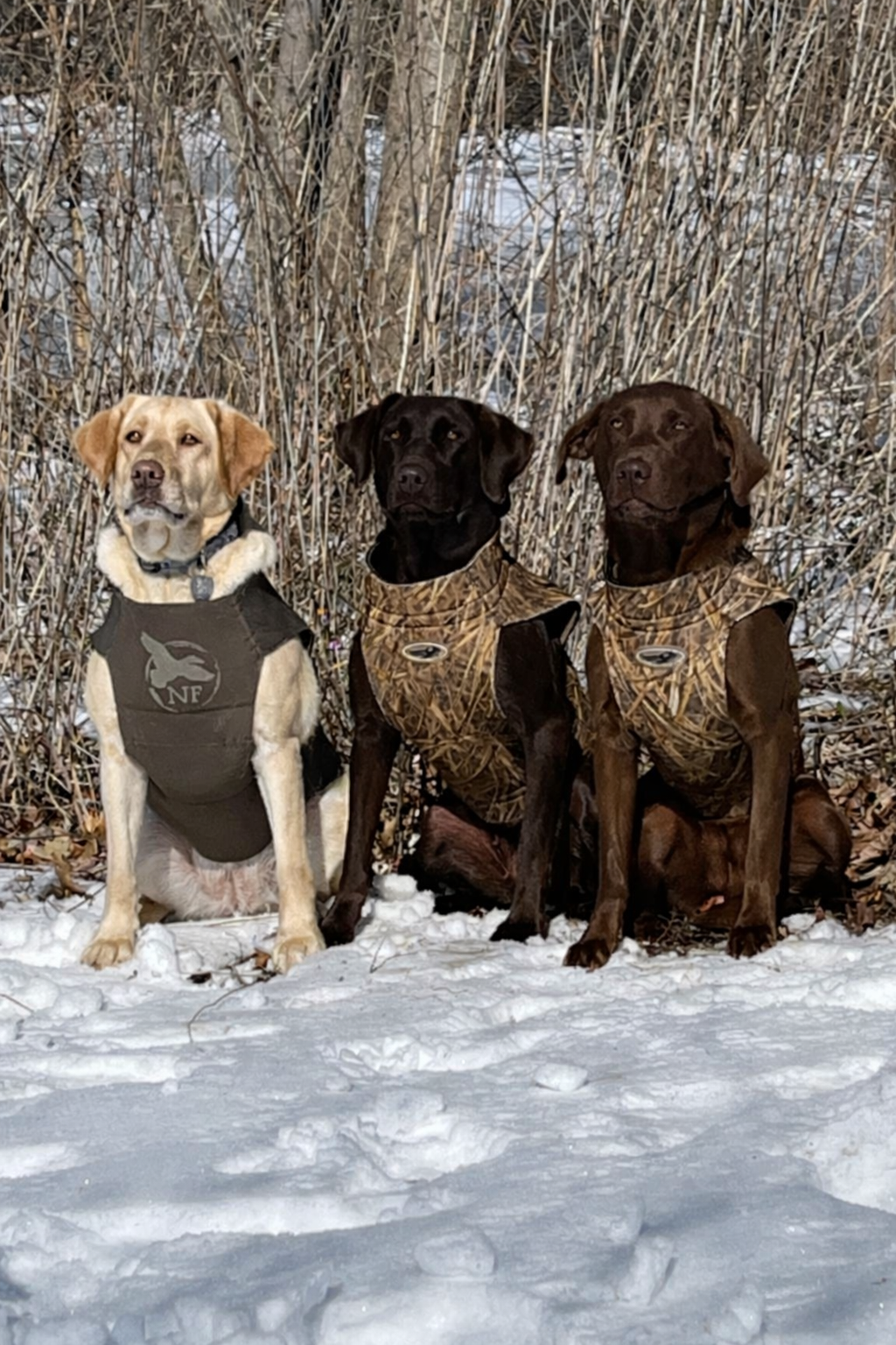 We still took them out to train and get a great photo. Yellow lab is his and mine are the two chocolates.