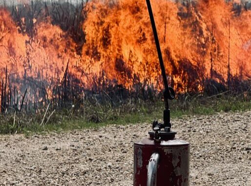 Community Flame Thrower Burning grasses off to apply chemical to ground layer to eradicate giant salvinia, before this invasive takes over our area.